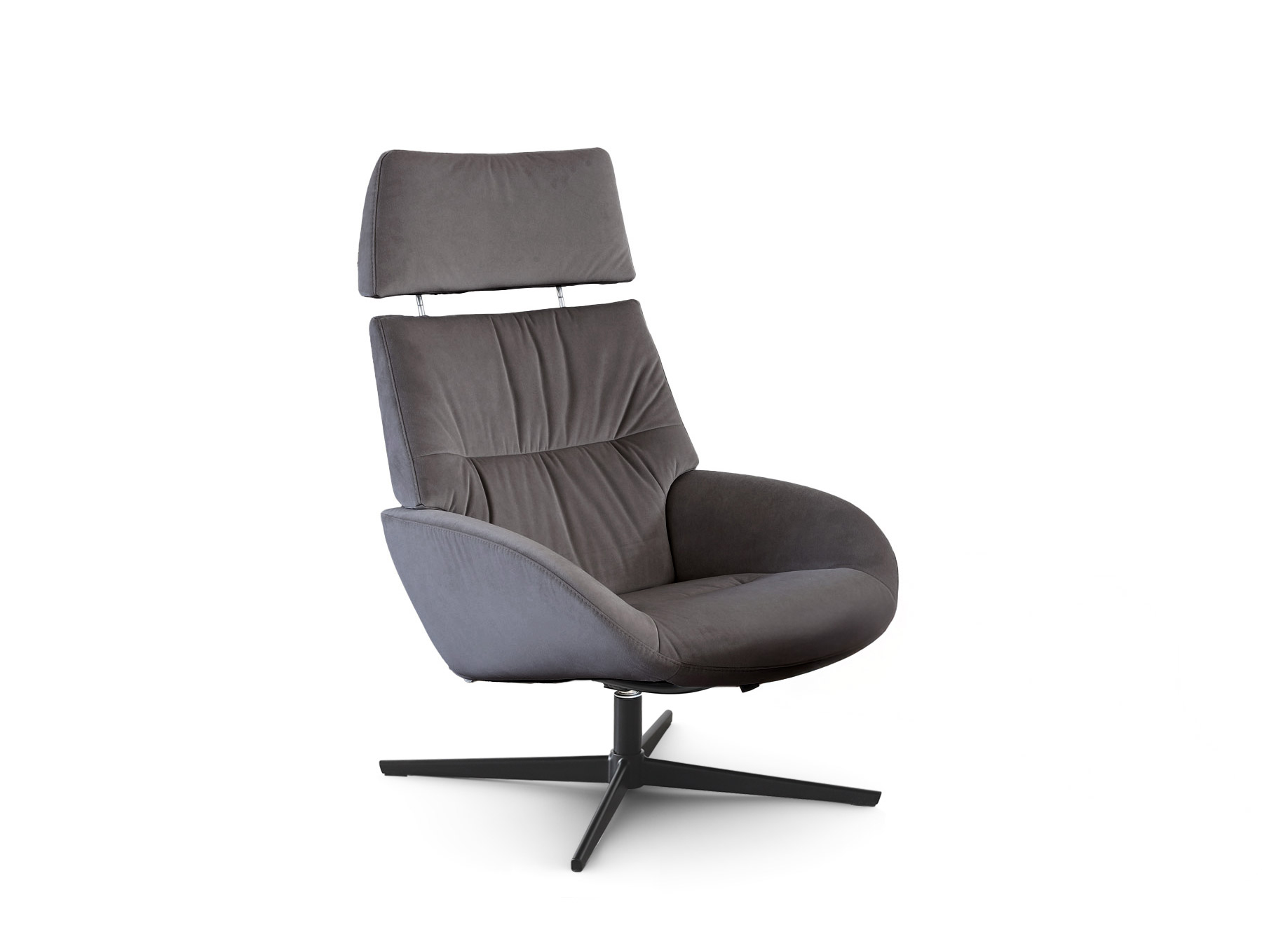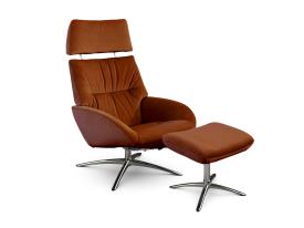 Kebe Réf. 606 Dimensions : l 72,5 x h 101,5 x p 87 cm Erola Plus est un fauteuil de la collection Kebe Modern Lifestyle, qui allie simplicité moderne et confort optimal. Il est équipé de l’appui-tête Plus, réglable en hauteur et en inclinaison, permettant un ajustement parfait du soutien selon les besoins individuels. Les plis subtils du revêtement soulignent la douceur et confèrent au fauteuil une touche chaleureuse et accueillante. Sa base pivotante accroît la fonctionnalité, tandis que son design minimaliste s’intègre parfaitement aux intérieurs contemporains. fauteuil relax et relaxation