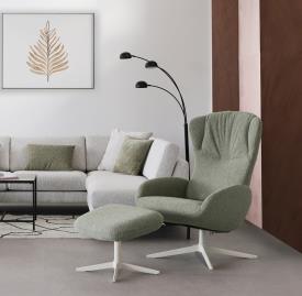Kebe Réf. 676 Dimensions : l 73 x h 104 x p 90 cm Robbie est un fauteuil de la collection Kebe Dynamic Lifestyle, alliant une esthétique moderne à une conception simple et fonctionnelle. Doté d’un mécanisme d’inclinaison du dossier et d’une base métallique pivotante et stable, il offre un confort agréable au quotidien. L’appuie-tête réglable intégré soutient la tête et la nuque pour plus de bien-être. Ses lignes épurées et son allure équilibrée permettent à Robbie de s’intégrer naturellement dans différents styles d’intérieur. Le modèle peut être complété par un repose-pieds disponible séparément. fauteuil relax et relaxation